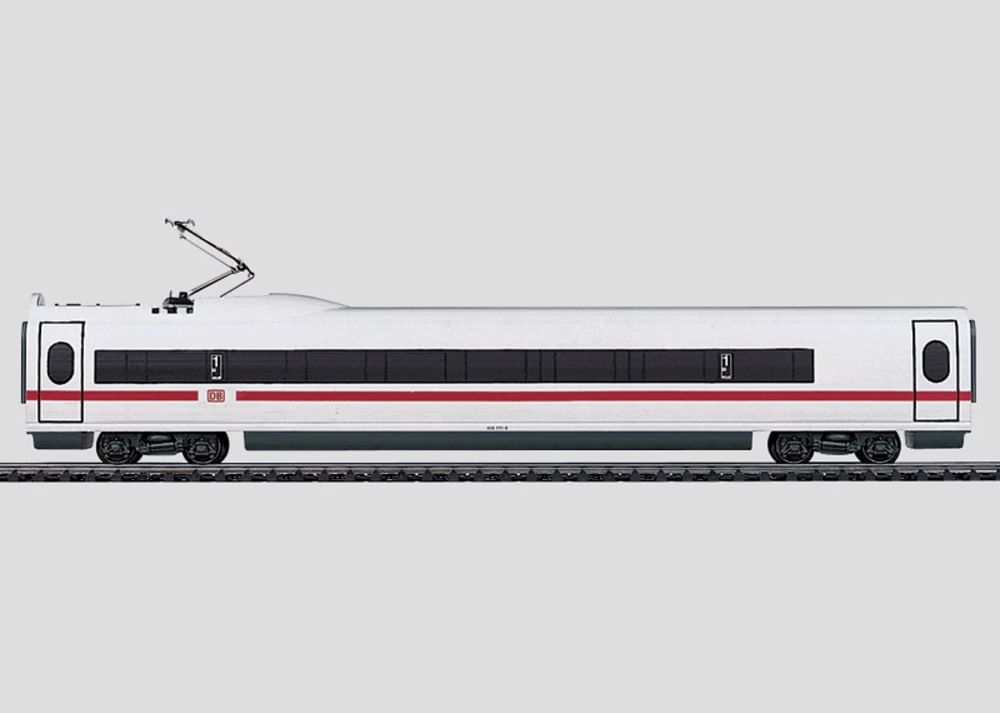 Intermediate car to add to the 34780/37780 models of the ICE trains. The car has special close couplings with guide mechanism. Interior lighting powered by the continuous electrical connections through the entire train. Length 27.9 cm / 11".