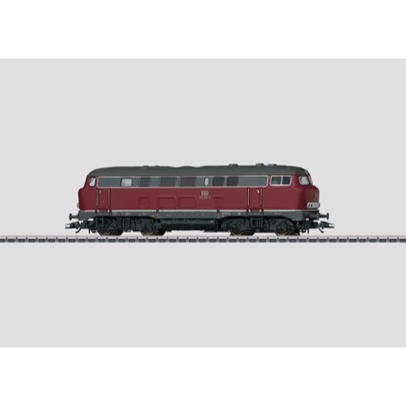 The locomotive has an mfx digital decoder and extensive sound functions. It also has controlled high efficiency propulsion with a flywheel, centrally mounted. All 4 axles powered through cardan shafts. Traction tires. The triple headlights and dual red marker lights change over with the direction of travel, will work in conventional operation, and can be controlled digitally. The headlights are maintenance-free, warm white LEDs and the marker lights are maintenance-free, red LEDs. The locomotive has separately applied metal grab irons on the sides and ends. It also has detailed buffer beams. Brake hoses are included that can be installed on the locomotive. Length over the buffers 18.4 cm / 7-1/4".