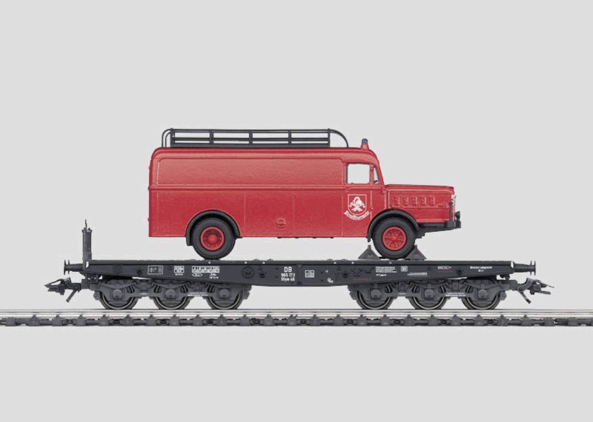 Length over buffers 15.2 cm / 5-31/32". Box car model with metal body and fire equipment. DC wheel set 6 x 70 0580.