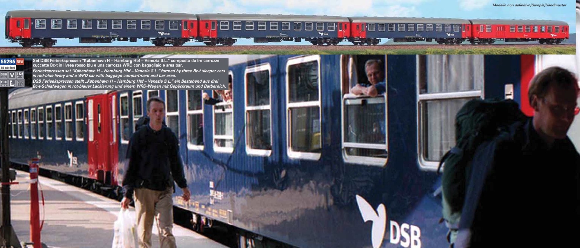 DSB Ferieekspres, bestående af 3 stk. Bc-t liggevogne samt et stk. WRD kioskvogn. Vognene kørte mellem København H - Hamburg Hbf - Venezia.