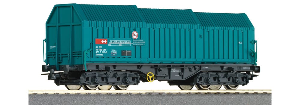 Teleskophættevogn type Shimmns fra SBB i forbilledkorrekt turkis farve, Epoke V.
