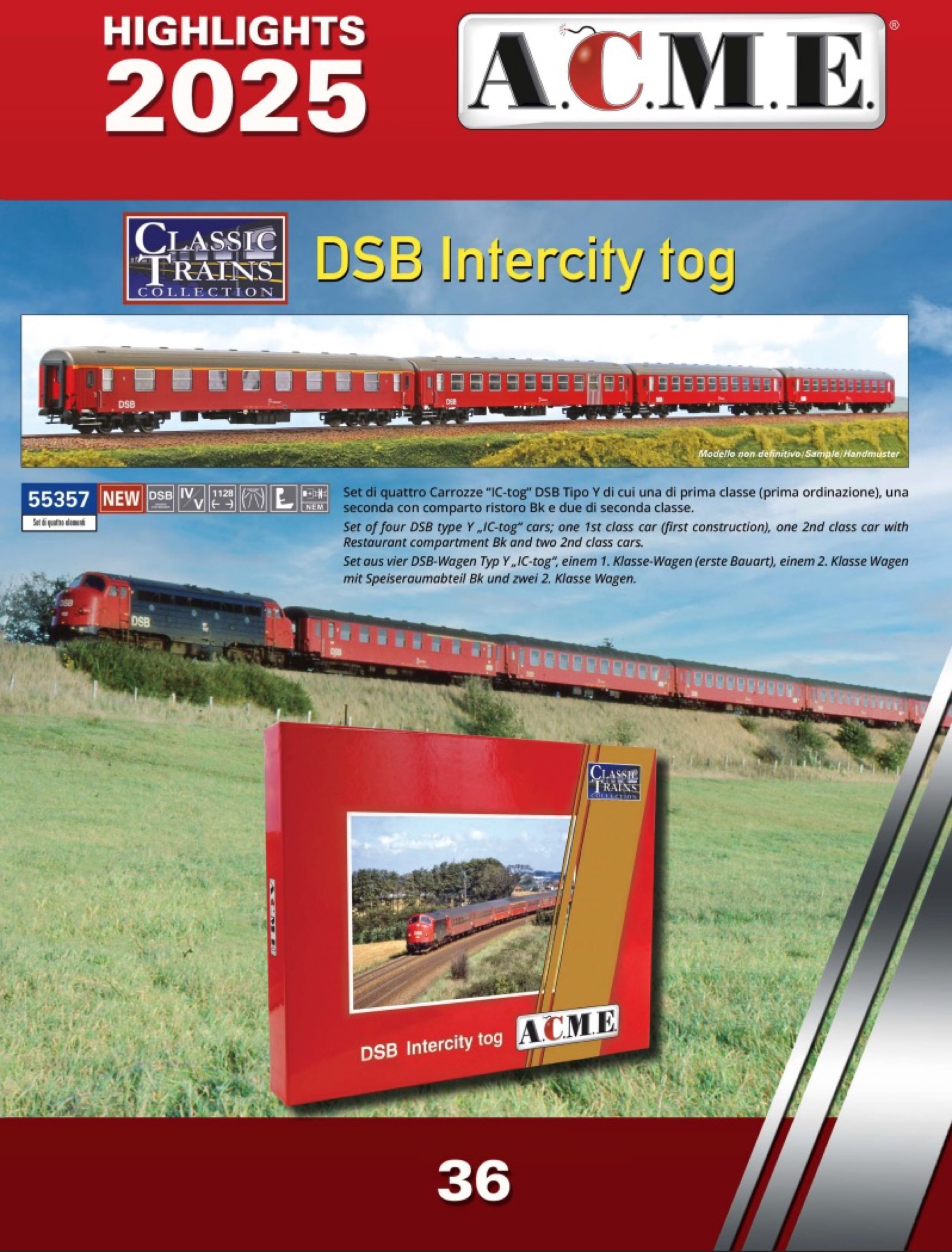 Intercity tog der DSB, Epoche IV/V 4-teilig, bestehend aus Typ Y 1 x 1. Klasse, 1 x 2. Klasse mit Speiseraumabteil und 2 x 2. Klasse