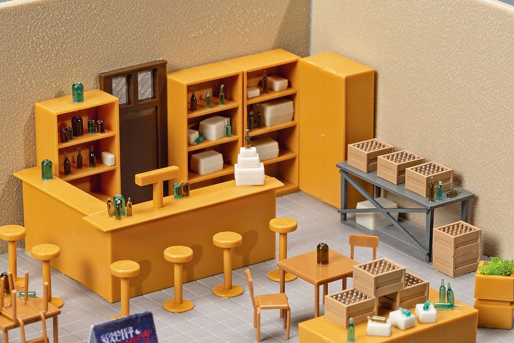 Die Ausstattung ist vielfältig: Neben Tresen, Schränken, Tischen und Stühlen gehören auch zahlreiche Details wie Flaschen, Pakete und Blumenkübel zum Lieferumfang. Für den Modeeinzelhandel liegen Kleiderständer, Kleidung zum Aufhängen sowie Schuhe bei. Ein besonderes Highlight sind die beiliegenden Schaufensterpuppen aus dem 3-D-Drucker, die für eine moderne und plastische Darstellung im Schaufenster sorgen.