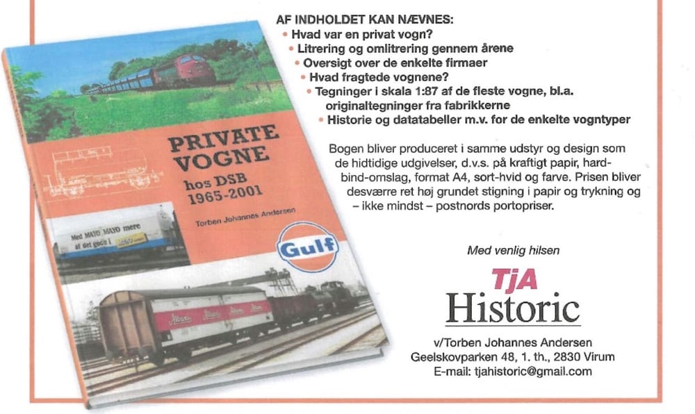 Bogen Private vogne – hos DSB 1965–2001. Den syvende bog i rækken af udgivelser om DSB's vognparker gennem årene. Bogen er et must for enhver modeljernbaneentusiast, der kører dansk.
