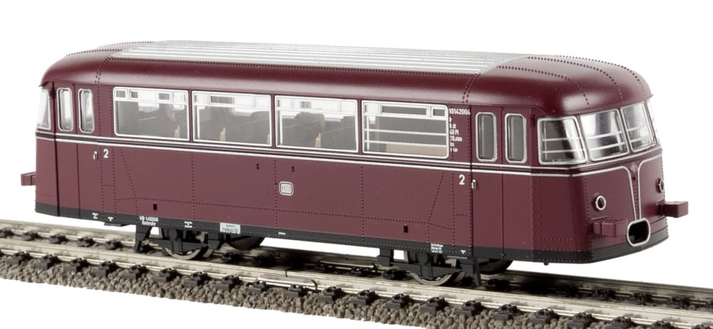 Beiwagen Baureihe VB 142 zum Dieseltriebwagen Baureihe VT 95.9 der Deutschen Bundesbahn (DB), Epoche IIIb. Viertürige Ausführung mit der Betriebsnummer VB 142 006. Modell als Variante für Wechselstrombetrieb, ausgestattet mit fahrtrichtungsabhängigem rot/weißem Lichtwechsel, Inneneinrichtung und Innenbeleuchtung. Mindestradius: 360 mm Top-Dekorationsmodell (TD). - Neuheit 2015