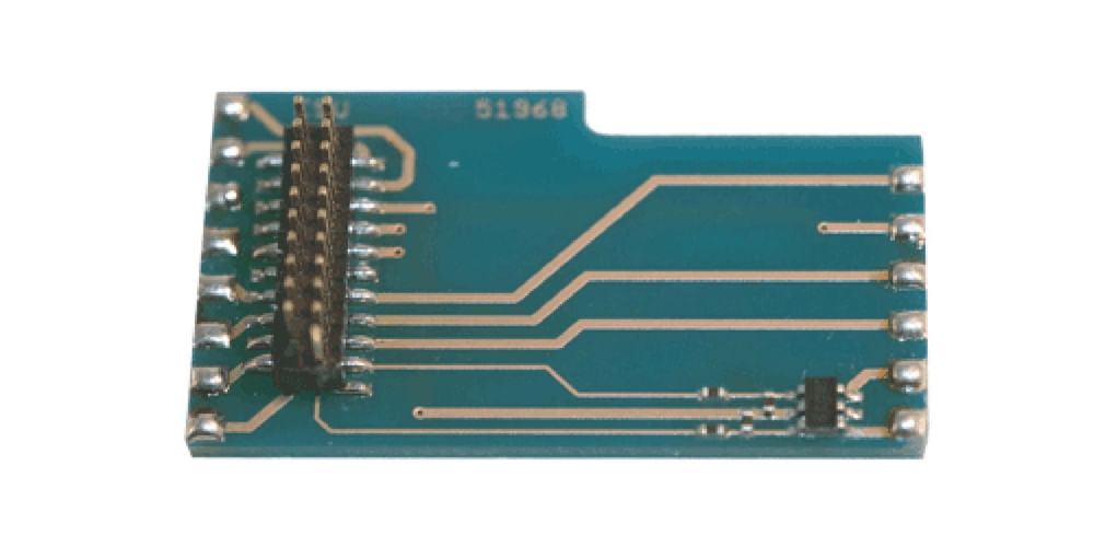 Adapterlokplatine L-Form wie 6090x, mit AUX3 bis AUX6, für LokSound V3.5/V4.0, LokPilot V3.0/V4.0 mit 21MTC-Schnittstelle