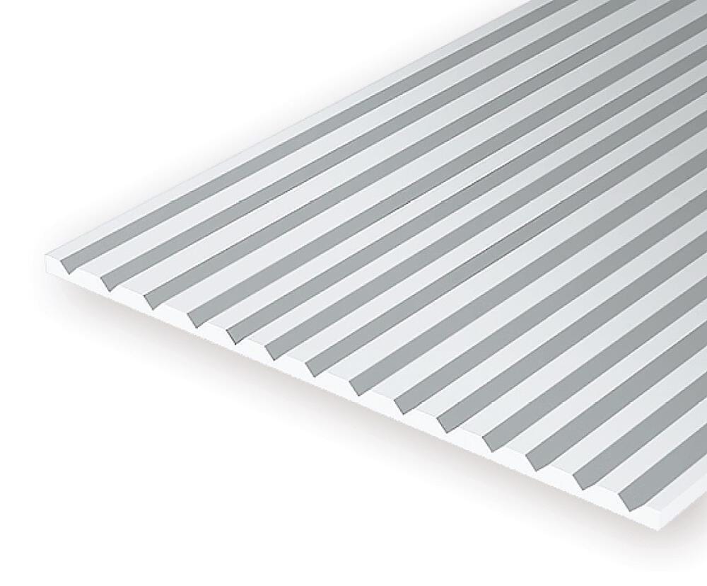 Structure sheet in white polystyrene, 300x600x1.0 mm. V-groove with grid 1.00 mm, 1 piece. Ideal for plastic model-making, model railway, architectural model-making or simply for crafts and creativity!
