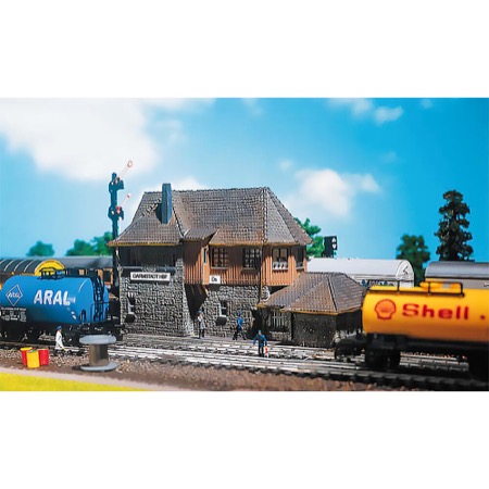 Wiederauflage des Klassikers B-126 Stellwerk »Darmstadt«. Das charmante Stellwerk besticht durch seine steinerne Außenfassade, die mit liebevollen Holzelementen und grünen Akzenten verziert ist. Von hier aus werden die Weichenmechanismen gesteuert und die Gleisrichtung für die Züge festgelegt. Ersterscheinung: 1968. In hochwertiger Verpackung im Retro-Look, inklusive eines Reprints des FALLER-Magazins Nr. 49.