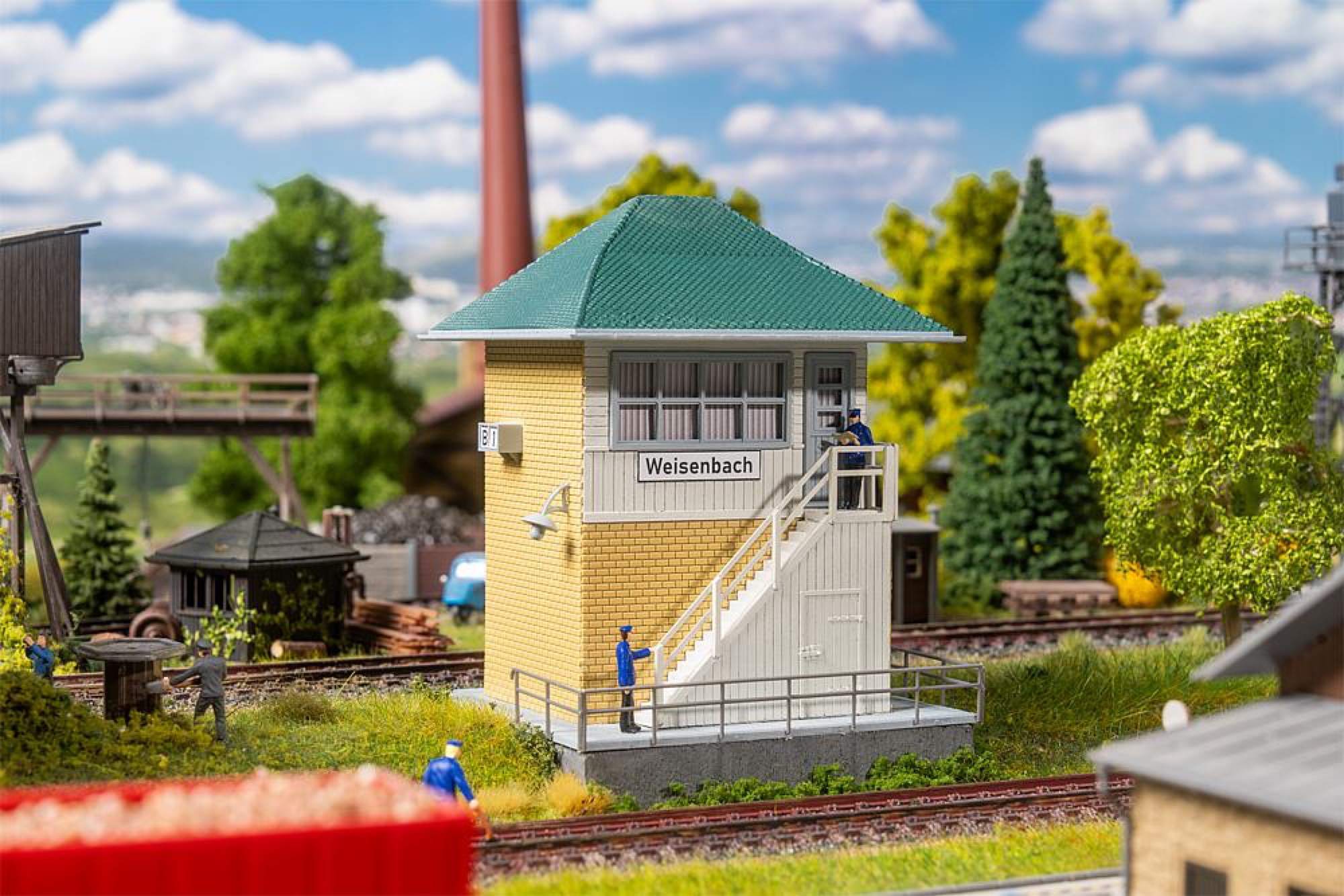 Ein kleines Highlight für die Modellbahnanlage! Die gelb gemauerte Blockstelle mit markantem, dunkelgrünem Zeltdach und weißem Holztreppenaufgang bringt mehr Betriebsamkeit auf Ihre Bahnstrecke. Perfekt, um die Anlage mit etwas detailverliebtem Realismus zu versehen.
