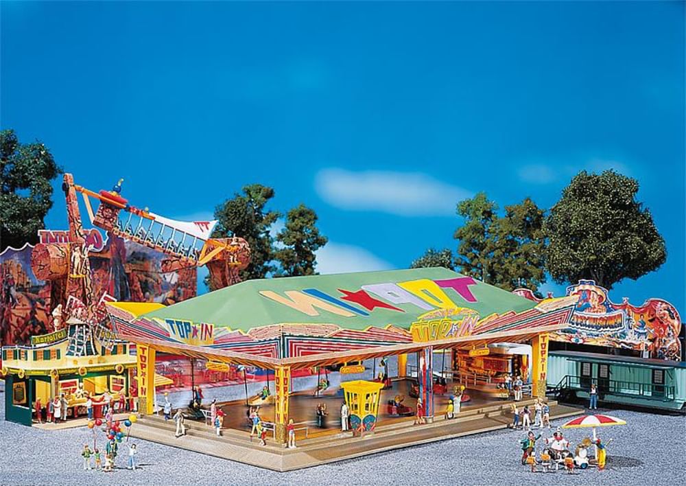 Ein dem Original der Firma Mack nach­gebauter 2-Säulen-Scooter, der heute im Besitz der Firma Schiedt & Sohn ist. In realistischen Maßen, mit neuer Antriebstechnik, 12 Scooter-Fahrzeugen und aufwändiger Dekoration. Komplett mit Motor (12-16 V, Wechselspannung). Dieser Bausatz enthält: 186 Einzelteile in 13 Farben, Fensterfolie, 1 Antriebsmotor, 2 Dekos und 1 Bauanleitung. Verwenden Sie zum Basteln FALLER - Plastikkleber.