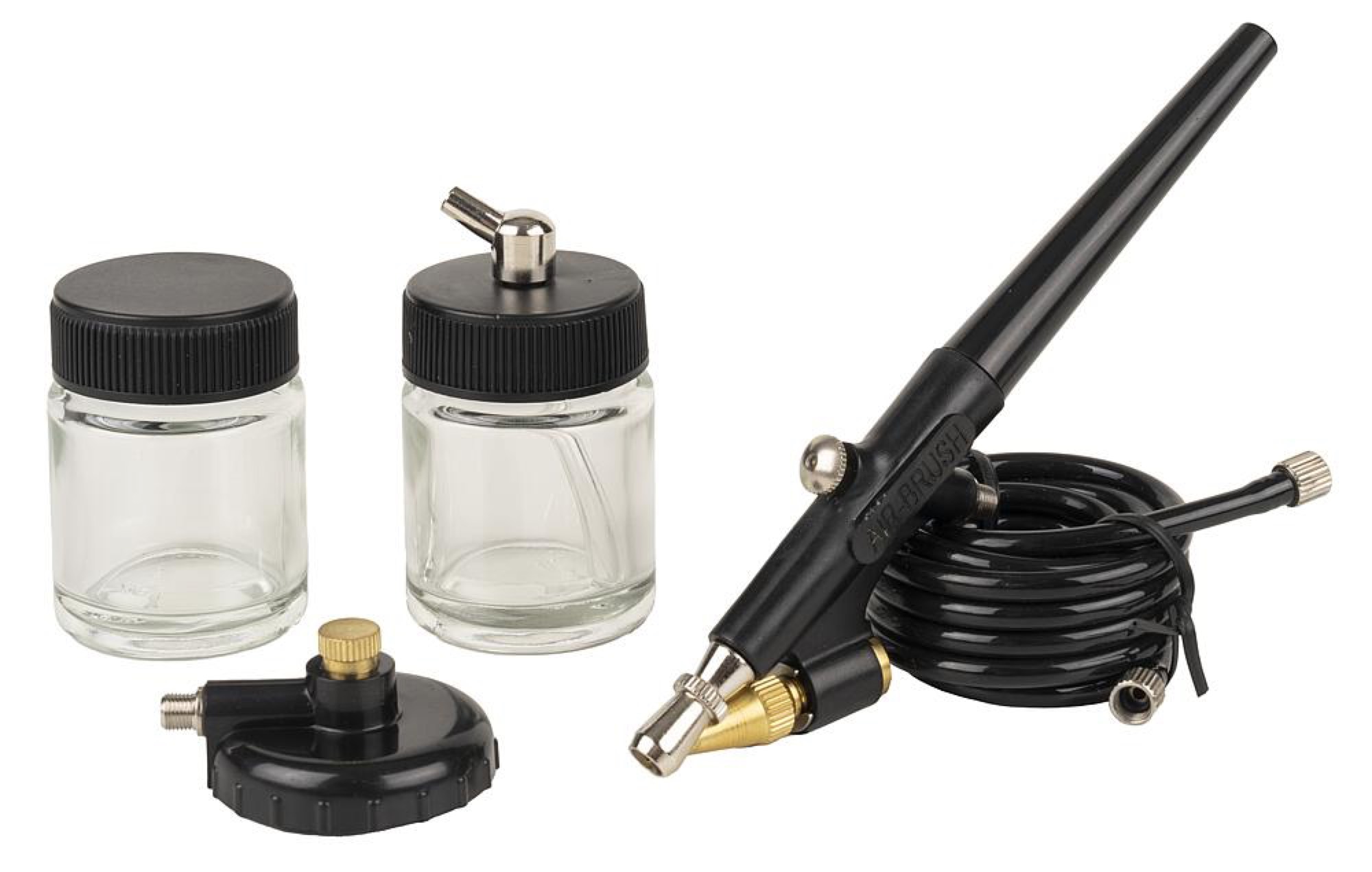 Die kleine FALLER Hobby-Airbrush, das ideale Start-Set für den Einsteiger. Inklusive 2 Farbbehälter aus Glas mit 22ml, Luftschlauch mit 1,5 Meter, sowie einem Druckluftdosenadapter und Anschluss für Druckluftkompressor 1/8 Zoll.