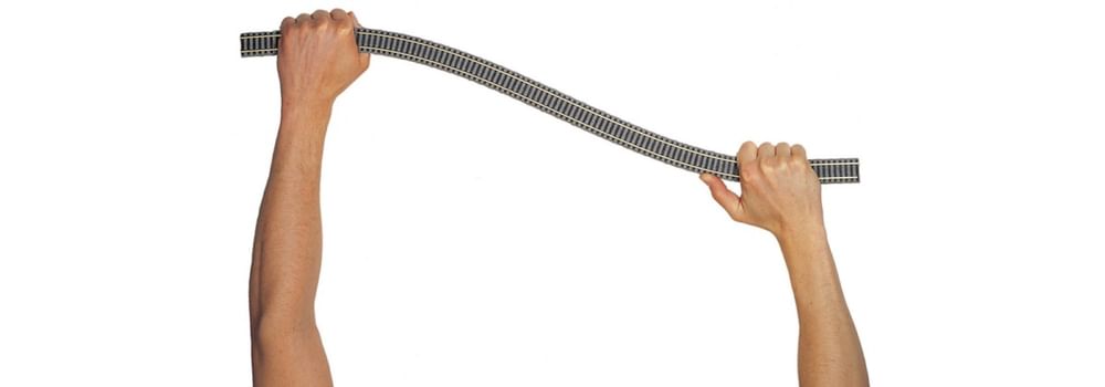 Flex-skinne 800 mm, svarende til 4 stk. standardlængder. Denne skinne kan bøjes efter behov - (det anbefales ikke at gå under radius 360 mm) Vi anbefaler skinnelaske 6436 til flexskinnerne!