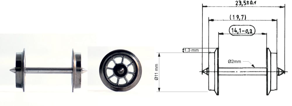 Nicht isoliert. Zum Umrüsten von FLEISCHMANN-Personenwagen mit Speichenrädern zum Einsatz auf Kunststoff-Gleisen für das Mittelleiter-Wechselstromsystem.