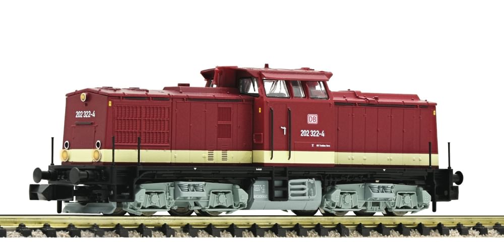 Fein detaillierte Ausführung der BR 202 (ex DR-BR 110) mit noch bordeauxrotem Gehäuse und neuem Logo der DB AG.
