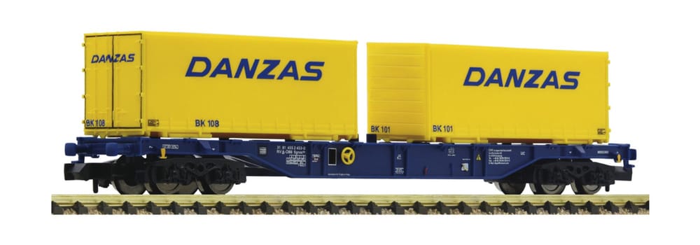 Containertragwagen mit 2 Wechselpritschen „DANZAS“, Bauart Sgns, der Österreichischen Bundesbahnen.