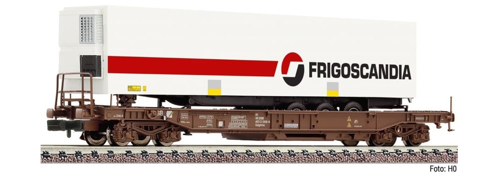 Einheitstaschenwagen mit Auflieger "FRIGOSCANDIA" der dänischen Staatseisenbahn DSB, Epoche V.