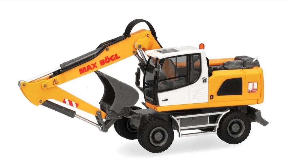 Fast 50 Modelle sind bisher in Zusammenarbeit mit Max Bögl aus Sengenthal bei Herpa in Miniatur umgesetzt. Mit diesem Liebherr Mobilbagger A940 erscheint mal wieder eine Baumaschine. Was Firmengründer Max Bögl 1929 mit einem Maurerbetrieb begann (und bereits fünf Jahre später 40 Beschäftigte und den ersten fahrenden Betonmischer im Landkreis Neumarkt unterhielt), erweiterte Max Bögl Junior 1955 um die Bereiche Straßen- und Kanalbau und der Anschaffung eines ersten Seilbaggers (Fabrikat Unibag). 1973 übernahmen die Söhne Max und Hans den Betrieb, während nur ein Jahr später der Firmengründer mit dem Bayerischen Verdienstorden geehrt wurde (und nur ein weiteres Jahr später verstarb). Heute hat das Unternehmen über 6.500 Beschäftigte an 49 Standorten weltweit in rund 25 Berufen bildet man den eigenen Arbeitskräfte aus. (Bayern/Segenthal)