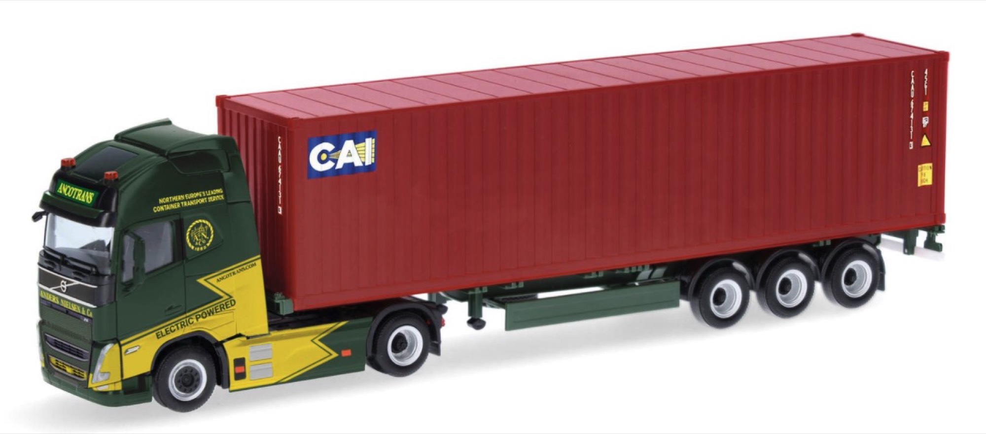 Ancotrans wurde 1882 in Kopenhagen gegründet und bewältigt heute über 350.000 Transporte jährlich mit 850 LKW, die über neun internationale Büros disponiert werden. Herpa setzt nach dem Volvo Ende 2022 (315531) und dem Iveco S-Way Ende 2023 (317146) nun diesen Volvo Electric in der markanten Farbgebung um. Der Auflieger trägt einen 40ft Highcube Kühlcontainer in der aktuellen Ausführung von CAI.