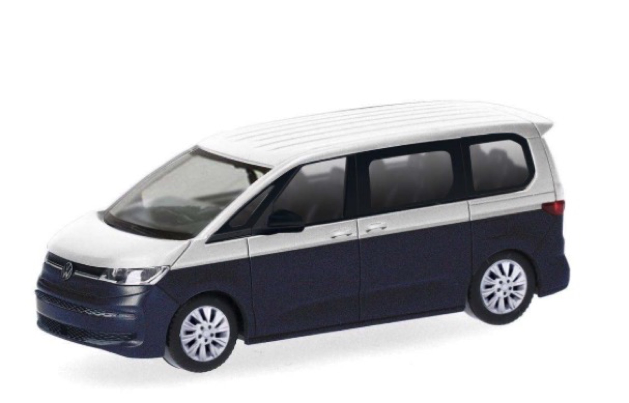Der VW Multivan (Typ ST) wurde bereits vor drei Jahren im Original vorgestellt, damals als Nachfolger des T6, bzw. T6.1 Bus und dem Sharan, quasi als Zwischengröße, auf Basis des "Modularen Querbaukasten" (MQB). Nach den beiden einfarbigen Modellen aus dem vorherigen Prospekt erscheint nun die Bi-Color Ausführung in candyweiß-starlightblue.