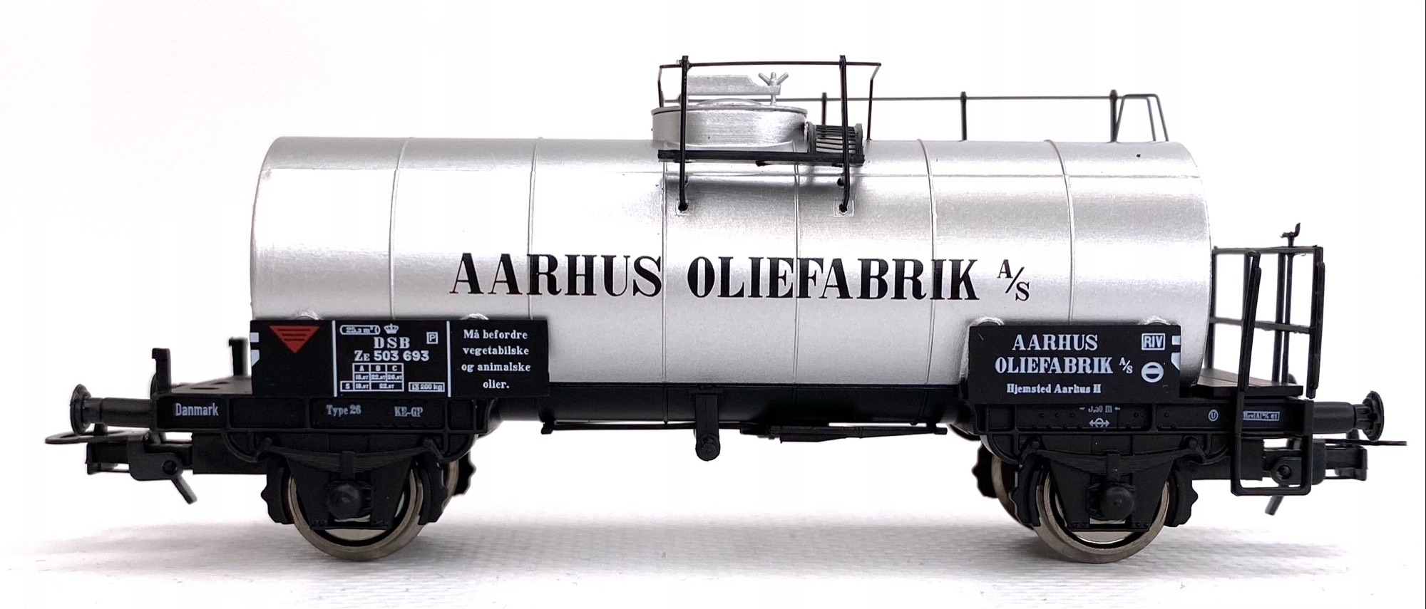 DSB ZE 503 693 tankvogn fra firmaet Aarhus Oliefabrik A/S. Vognen er en falkenberg med selvbærende tank (modsat ROCOs tidligere vognsæt). modellen fremstilles for Hobbykæden \HK-modeller\" af JECO, og er meget detaljeret med ætsede metaldele og korrekte danske navneplader mm!"