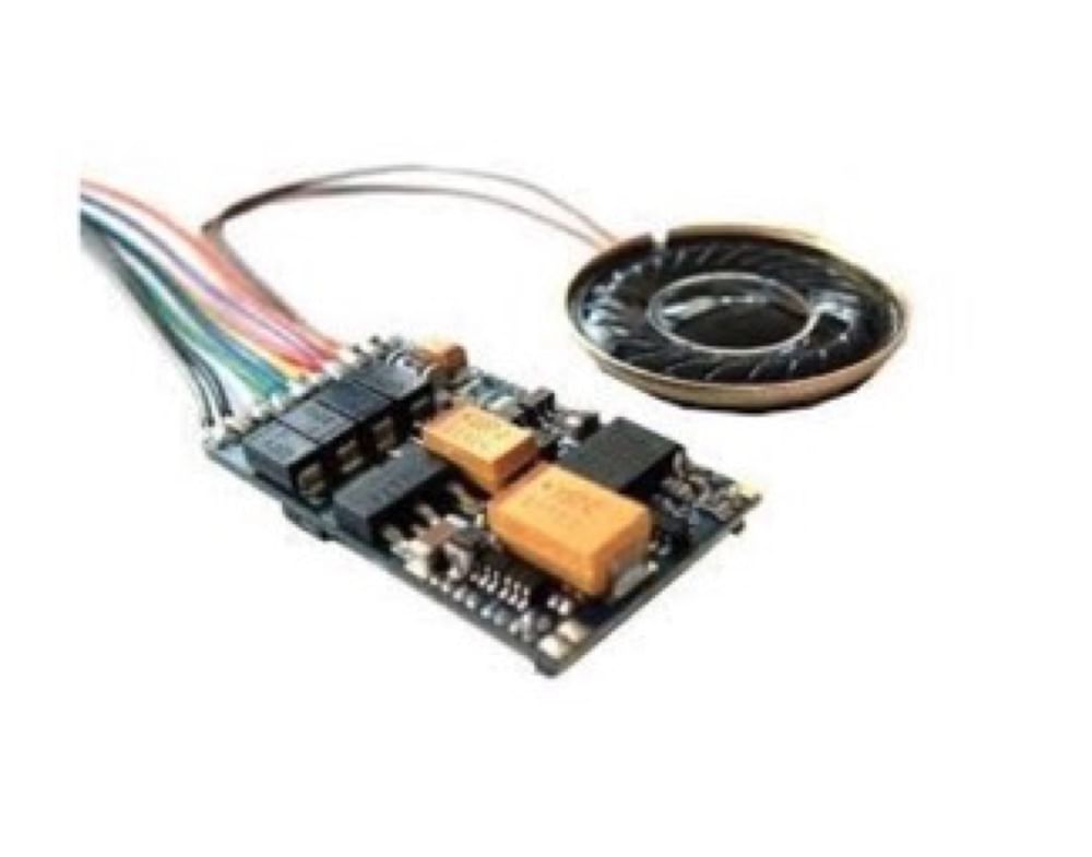 Lydmodul til DSB samt privatbane-lynetter / Y-tog. 21 pins ESU loksound decoder med dansk lynette lyd. Lydmodulet er tilpasset til Heljans lynetter/y-tog og monteret med firkantet Zimo højtaler. Lydmodulet har følgende funktioner: F0 : Lys on/off F1 : Motorlyd start/stop (Y-tog) F2 : Dørlukningslyd (Y-tog) F3 : Horn 1 F4 : Horn 2 F5 : Horn 3 F6 : Rangerhastighed F7 : Løsne Bremser F8 : EL horn F9 : Lyden af sporskifte-passage F10 : Kurvelyd F11 : Sporsamlings lys F12 : Sanding F13 : \Gå ikke over sporet\"