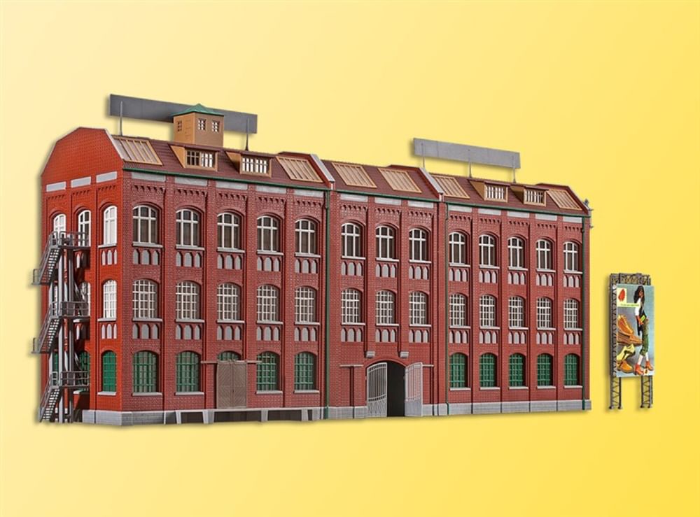 Bausatz. Diese Fabrik ist epochenübergreifend einsetzbar. Sowohl auf Modellbahnanlagen der frühen Epochen als auch in moderneren Zeiten ist die Siux-Schuhfarbrik ein Highlight. Ein imposantes Gebäude und vom Baustil ideal kombinierbar mit vielen weiteren tollen kibri Bausätzen aus Industrie und Gewerbe. L 57,0 x B 16,0 x H 25,0 cm Schwierigkeitsgrad: 2 (Fortgeschrittene)