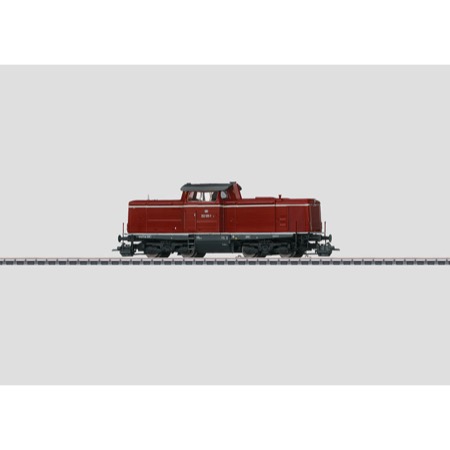 The class V 100 diesel locomotives were developed in the Fifties initially as a replacement for the class 64 and 86 steam locomotives and were planned for light service on main lines and mixed use on branch lines. The V 80 served as a prototype, but the new locomotive was to be considerably more cost effective. MaK in Kiel was contracted to develop this locomotive in cooperation with the DB's central office in Munich. Late in the fall of 1958 MaK delivered five pre-production locomotives, road numbers V 100 001-005 (later V 100 1001-1005, and from 1968 on 211 001-005) each with a 1,000 horsepower motor as well as road number V 100 006 (later V 100 2001, and from 1968 on 212 001) which has a 1,350 horsepower motor. In 1961/62 an order was placed for 20 pre-production locomotives of the class V 100.20 with the more powerful 1,350 horsepower motor as a "lightweight main line locomotive". Between 1963 and 1966 the German locomotive builders delivered two groups of a total of 360 units of this more powerful variation. In 1965 ten units (road numbers V 100 2332-2341) were equipped with hydrodynamic brakes for use on the steeply graded route from Rastatt to Freudenstadt. The squared off, boxy shape was characteristic for the V 100 and clearly borrowed from the V 60 for this look. The motor output was transmitted to the hydraulic Voith transmission by means of an elastic coupling and universal joint shaft. The transmission had stepped gears allowing operation on the line (maximum speed 100 km/h / 63 mph) or in switching operations (maximum speed 65 km/h / 41mph). The trucks with their tube construction were a new design, and the wheel set suspension arms were mounted on them by means of silent blocks. The engine layout in the front, longer hood was very accessible from outside by means of a hood-shaped sliding door. These units were general-purpose locomotives and were run with light and medium passenger, fast passenger, and freight trains on main lines and branch lines. In 1968 the V 100.20 was assigned the computer-generated class designation of 212; the locomotives for steeply grade routes were run as the class 213. From the mid-Nineties on these locomotives were used less and less. The last units were taken out of service on the DB AG's freight division (Railion) in December of 2004. These retired locomotives were not scrapped for the most part; most were sold via locomotive dealers. Many are used today by track construction firms in France and Italy. Private German railroads and foreign state railroads were and still are willing buyers of the V 100.20 (212). Even the DB has not dispensed entirely with these proven locomotives. Twelve re-motored units are in operation on the DB Fahrzeugdienste GmbH (locomotive and car maintenance unit of the DB) and six of the 212/213 can be found at the DB Bahnbau-Gruppe GmbH (track maintenance unit of the DB). Fifteen units remain available rebuilt as the class 714 for the DB Netz Notfalltechnik (network emergency technology unit of the DB) and serve as motive power for rescue trains that used chiefly for emergency situations on the newly constructed routes.