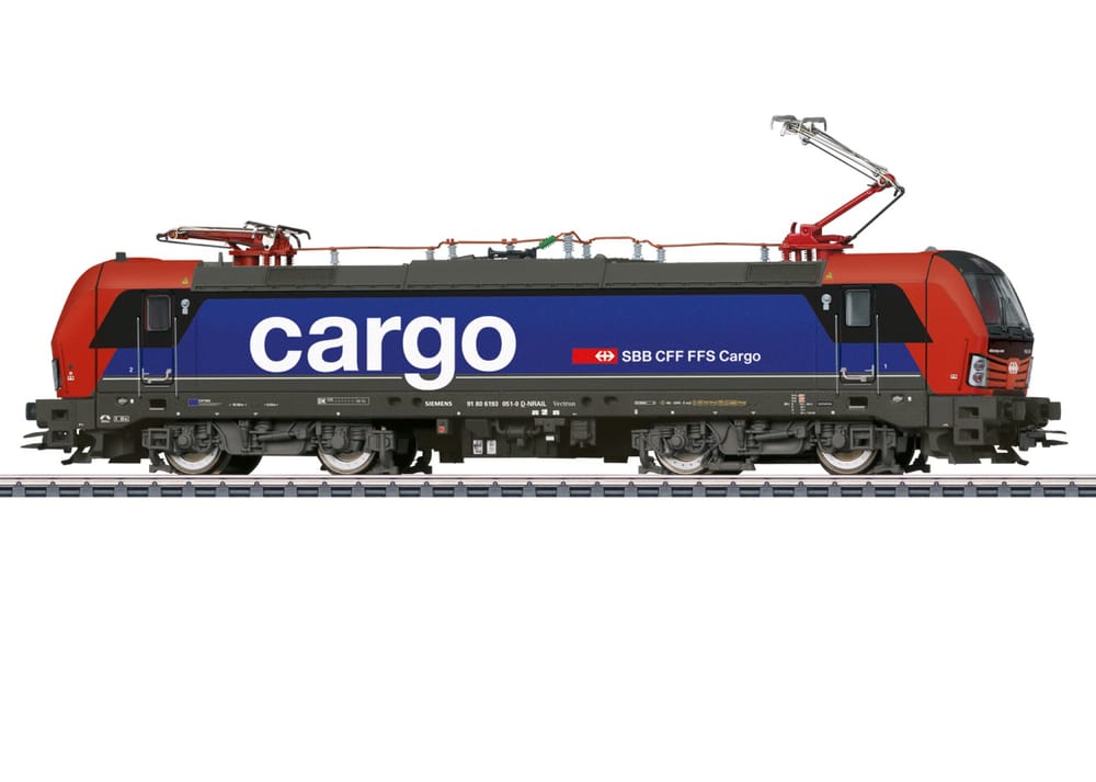 >Prototype: SBB Cargo, Inc. class 193 (Vectron) electric locomotive in a new paint scheme design. The locomotive looks as it does in 2024.