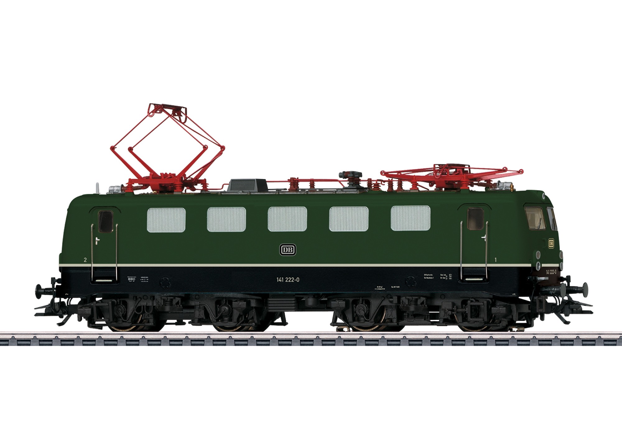 The locomotive has an mfx+ digital decoder and extensive sound functions. It also has controlled high-efficiency propulsion with a flywheel, centrally mounted. 4 axles powered by means of cardan shafts. Traction tires. The triple headlights and dual red marker lights change over with the direction of travel, will work in conventional operation, and can be controlled digitally. The headlights at Locomotive End 2 and 1 can be turned off separately in digital operation. When the headlights are turned off at both ends, the double "A" lights are on. Maintenance-free, warm white and red LEDs are used for the lighting. The locomotive has separately applied metal grab irons. The engineer's cabs have interior details. The locomotive has separately applied roof walks. The locomotive has detailed buffer beams. Brake hoses and coupler hoses to mount on the locomotive are included as detail parts. Length over the buffers 18.0 cm / 7-1/8".