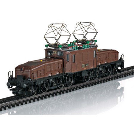 The locomotive has an mfx+ digital decoder and extensive sound and light functions. It also has controlled high-efficiency propulsion. 3 axles and jackshaft powered. Traction tires. The triple headlights and 1 white marker light (Swiss headlight / marker light code) change over with the direction of travel, will work in conventional operation, and can be controlled digitally. When the locomotive is running "light" the lighting can be changed to 1 red marker light. Maintenance-free warm white and red LEDs are used for the lighting. The locomotive frame is articulated to enable the locomotive to negotiate sharp curves. The metal locomotive body comes in 3 parts with hoods that swing out separately. The roof equipment is detailed. Length over the buffers 23 cm / 9-1/16".