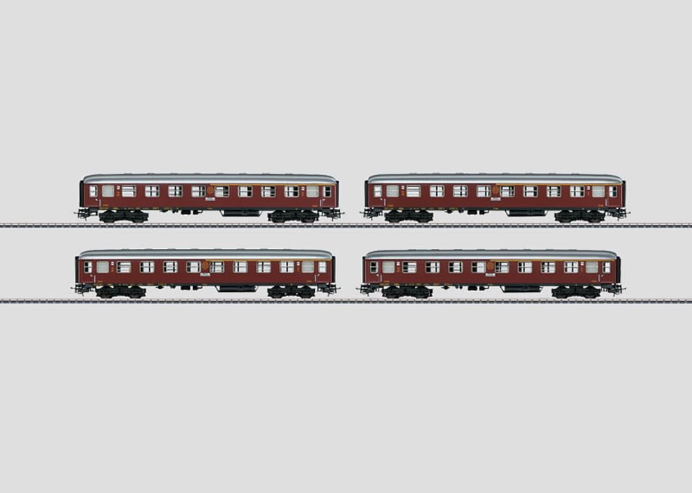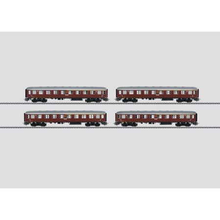All of the cars have Relex couplers and rubber tube diaphragms. The train destination signs are printed on the cars. The cars have different car numbers. Each car comes individually packaged and marked. The packaging is based on the historic packaging design of the time in the past. There is also an additional master package. Length over the buffers for each car 24 cm / 9-7/16".