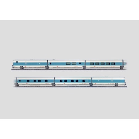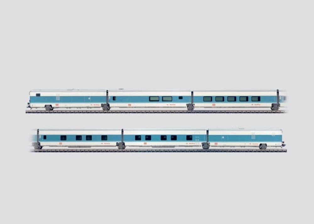 Basic set with 6 cars. The cars have an articulated mount between them for the axles with snap-in special couplings. Total length over the buffers 88.5 cm / 34-15/16". The train can be lengthened with the 41774 car set. DC wheel set 7 x 70 0580.