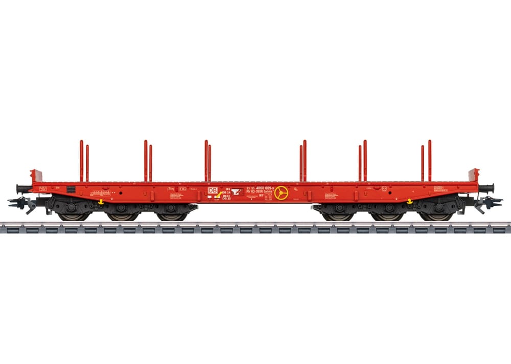 • Model: The frame is constructed of metal. There are many separately applied details. The car has special three-axle trucks. A separately applied hand wheel is included for setting the brakes. The car can be run with the Viessmann CarMotion units. Stakes and folded crossover plates are included as parts for separate installation. Length over the buffers 18.9 cm / 7-7/16".