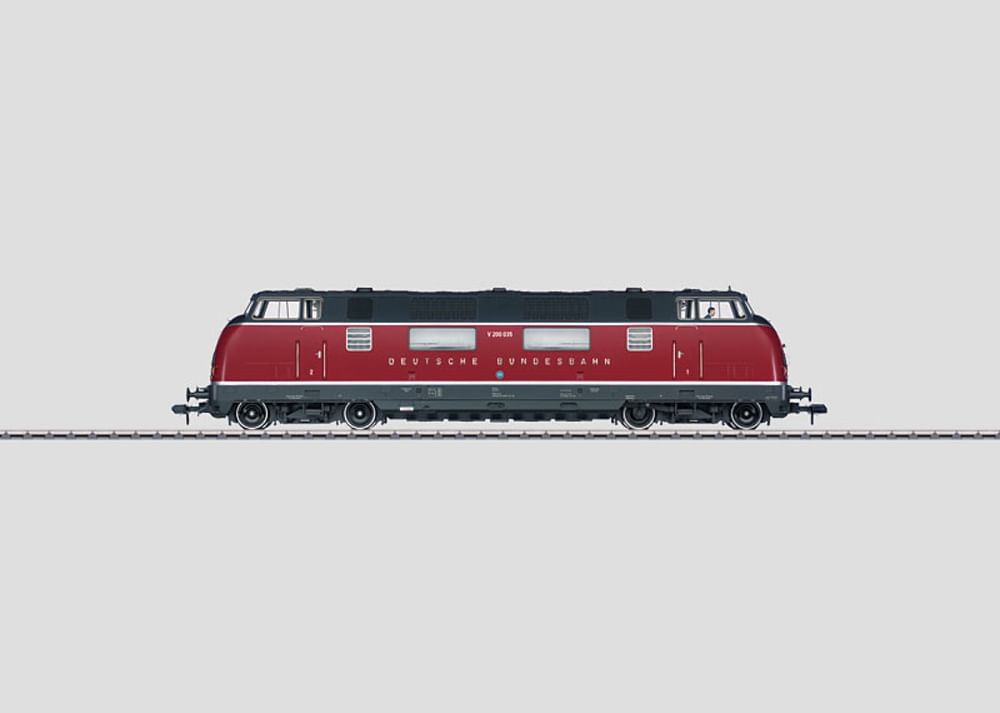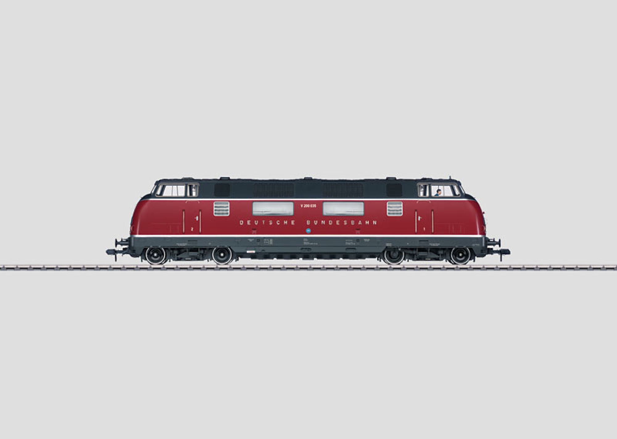 The locomotive has a frame constructed of metal with a low center of gravity. It also has an mfx decoder and extensive sound functions. This locomotive can be run with AC power, DC power, Märklin Digital, and DCC. It has a centrally mounted high-efficiency motor with power transmitted by means of a central gear box and cardan shafts to transfer gear boxes in both trucks, all axles powered. Traction tires. The headlights and red marker lights will work in conventional operation and can be controlled digitally. The locomotive has engineer's cabs with interior details and a figure of a locomotive engineer in the front cab. The engine room has details in relief. The locomotive has metal grab irons and other separately applied details: hand rails, antenna, roof vents. The claw couplers installed at the factory can be replaced by 2 reproduction prototype couplers included with the locomotive. Minimum radius for operation 1,020 mm / 40-3/16". Length over the buffers 57.7 cm / 22-3/4".