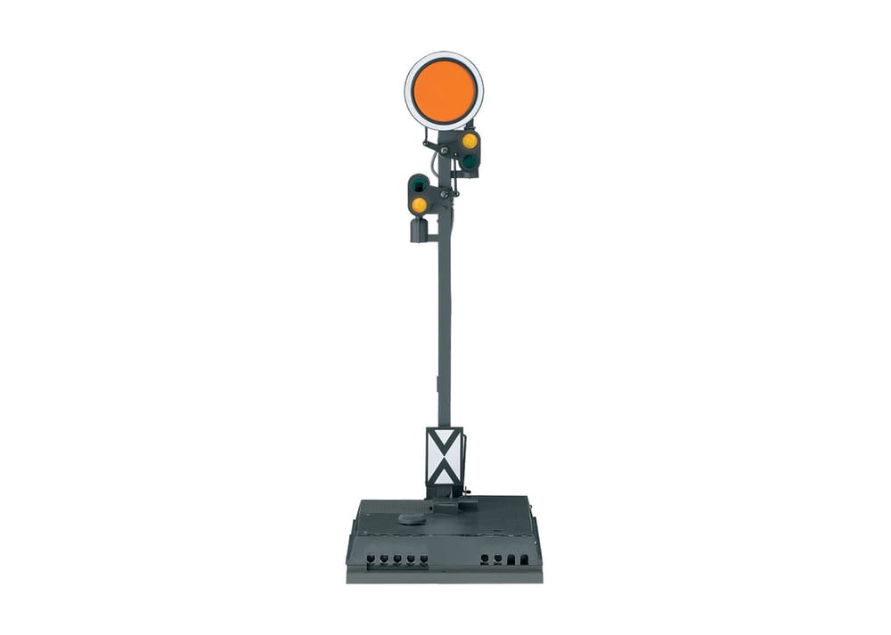 This signal complements the 5613 home signal. Solenoid mechanism. The signal's lights changes from yellow/yellow to green/green.