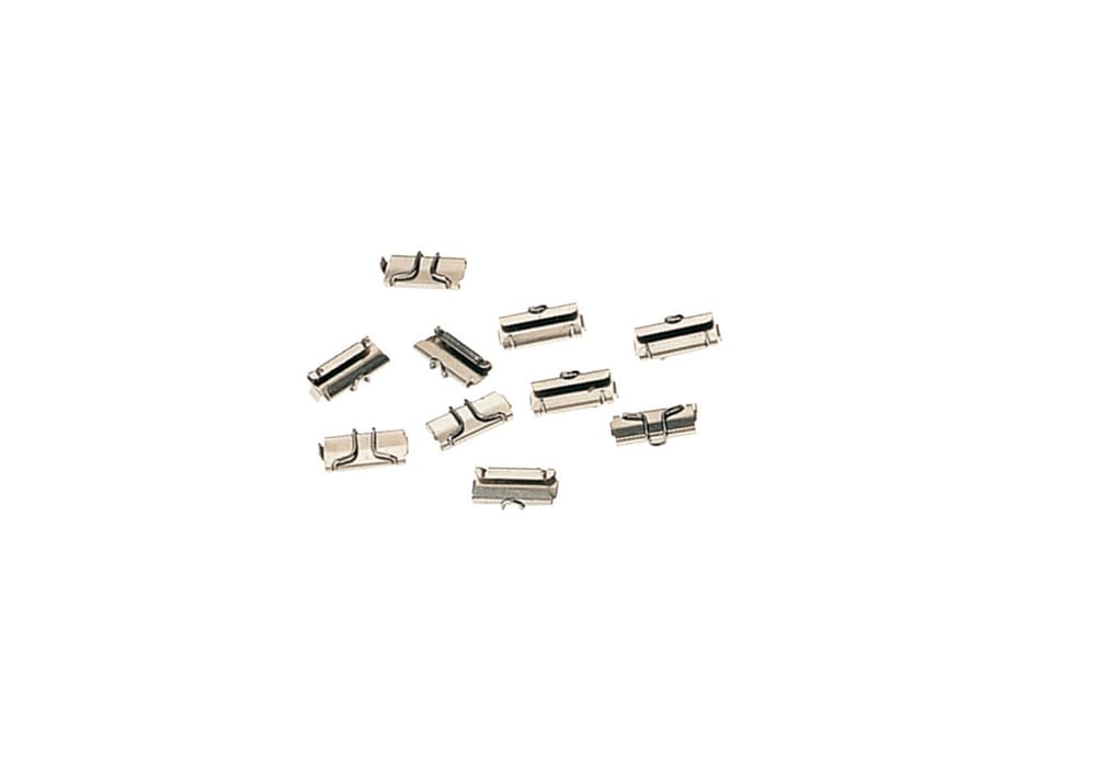 50 pieces per package. As the sample shows, protected metal rail joiners for reliable mechanical and electrical connections. (H1015)