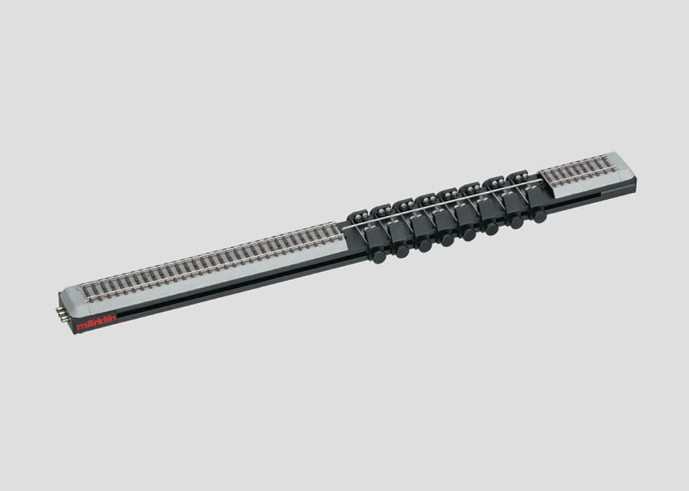 This is for servicing and presenting locomotives with up to 8 driving axles and coupled axles. This roller test stand is suitable for the "Big Boy". Eight adjustable pairs of roller brackets with precision ball bearings are included. The aluminum parts of the roller brackets are black anodized. The construction and technical features are the same as the 78150 roller test stand. Dimensions