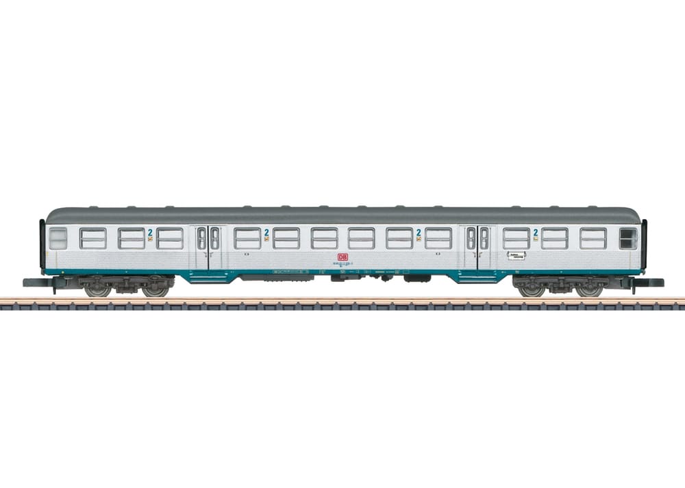 >Prototype: Type Bn 720 commuter car, 2nd class, Bn 720, known as the "Silberling / Silver Coin" as it looked in Era V.