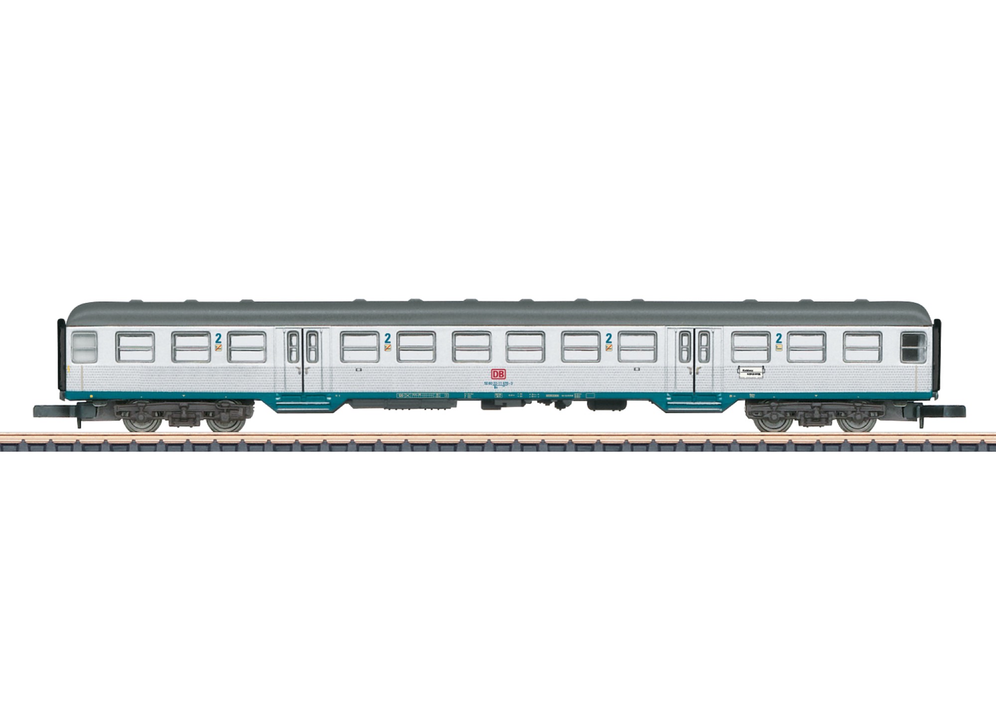 • Model: This is the first time to model the classic "Silberling" in Era V. The paint scheme and lettering are finely done. The car is equipped with close coupler hooks. Length over the buffers 120 mm / 4-11/16".