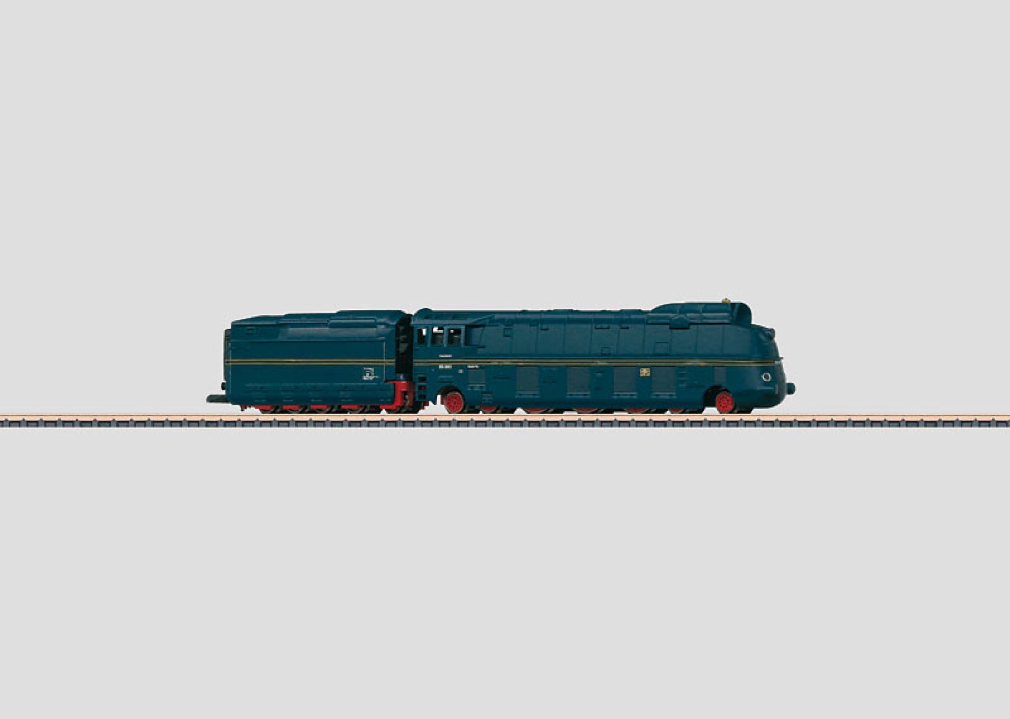 The locomotive has a 5-pole motor and a steel blue paint scheme. All 3 driving axles powered. The locomotive comes in a real wooden case with a certificate of authenticity. Length over the buffers 116 mm / 4-9/16".