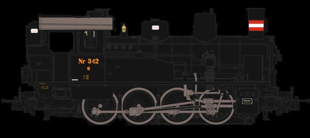 • Chassis, kedel og nederste del af førerhuset støbt i metal, skorsten drejet i messing.