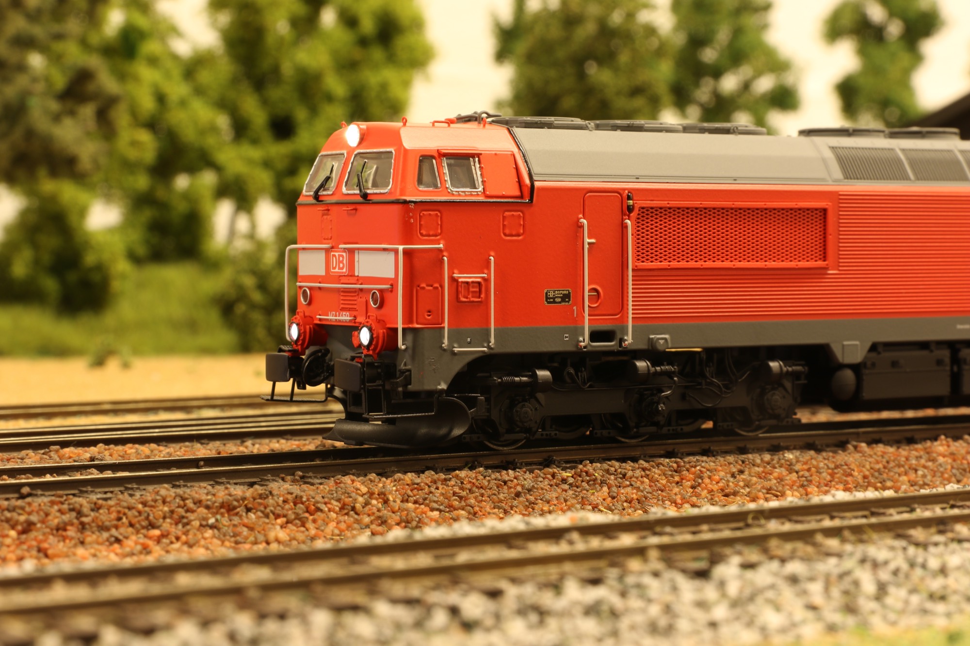 Modellen leveres i Verkehrot bemaling med grå/hvid stribe og DB logoer på fronten og EVN-nummer på siderne, underhængte frontplove.