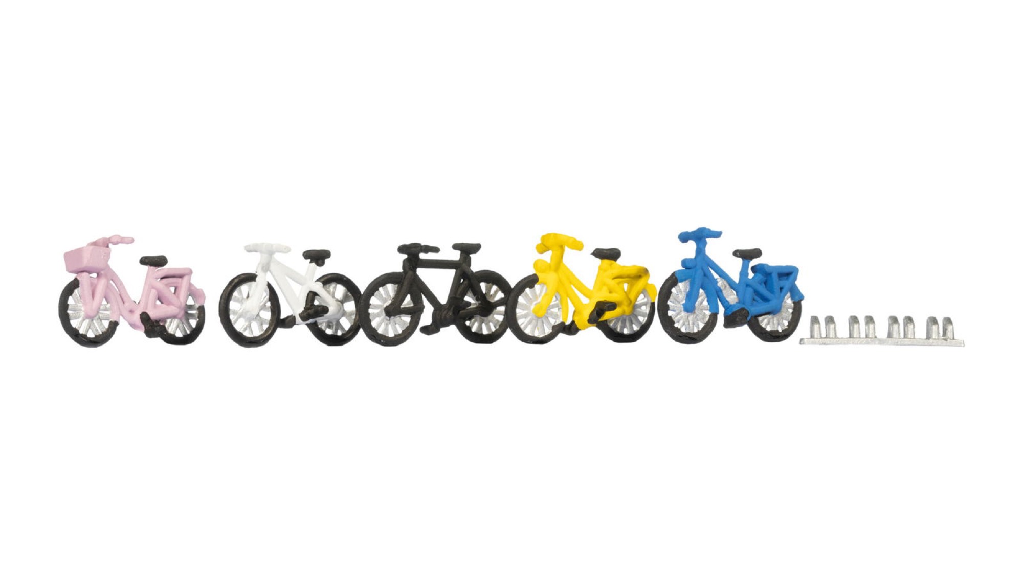 Wie bei NOCH selbstverständlich, sind die Fahrräder sorgfältig gestaltet und detailreich ausgearbeitet, in Deutschland entwickelt und gestaltet. Proportionen, Formen und Details wirken vertraut und realitätsnah. Die Darstellung ist bewusst zurückhaltend – damit sich die Fahrräder harmonisch in verschiedenste Szenen einfügen und den Blick für das Wesentliche schärfen. Die Einsatzmöglichkeiten sind vielfältig: Auf der Modelleisenbahn ergänzen die Fahrräder Bahnsteige, Fahrradständer, Straßenränder oder ländliche Wege. Im Modellbau lassen sich Alltagsszenen aus dem Arbeitsleben oder dem Landleben authentisch darstellen. Auch für Dekoration, Dioramen oder Makrofotografie bieten die Fahrräder ruhige, realistische Akzente. In Kombination mit Figuren aus den NOCH Figuren-Themenwelten – etwa Menschen in allen Lebenslagen oder Bahnbeamten – entsteht eine stimmige Miniaturwelt mit Tiefe und Bewegung.