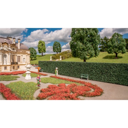 Mit den „Hecken, hoch (dunkelgrün)“ gestalten Sie realistische und detailreiche Begrenzungen für Gärten, Parkanlagen, Schlossgärten oder städtische Grünflächen auf Ihrer Modellbahnanlage oder in Ihrem Diorama. Die dichten, satt dunkelgrünen Hecken überzeugen durch ihre authentische Farbgebung und feine Struktur, die sofort einen natürlichen Eindruck vermittelt. Die hohe Bauform eignet sich ideal, um Sichtschutz, Einfriedungen oder formale Gartenarchitektur darzustellen. Dank der flexiblen Verarbeitung lassen sich die Hecken problemlos zuschneiden, formen und an die gewünschte Szenerie anpassen. Ob als repräsentative Gartenbegrenzung, ruhige Hintergrundkulisse oder markanter Blickfang – diese hochwertigen Hecken setzen klare Akzente und sorgen für mehr Tiefe und Realismus in Ihrer Modellwelt.