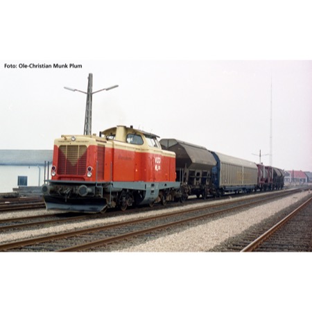 VLTJ ML 25 (Lemvigbanen) Digitalt skiftbar førerstandsbelysning | Detaljeret indretning af midterførerstand | Finætsede ventilationsgitre | Fritstående hånd- og grebsstænger | Køleanlæg med frit drejeligt ventilatorhjul | PIKO TrainSound® onboard | kompatibel med mfx® Tysk: Sound-Diesellok BR 211 VLTJ V Wechselstromversion, inkl. PIKO Sound-Decoder Neuheit 2025: Die schlichten Lokomotiven der Baureihe V 100 waren maßgeblich beteiligt am Verschwinden von Dampflokomotiven auf Nebenbahnen. Das Haupteinsatzgebiet der ab 1961 in Serie gelieferten Maschinen der BR V 100.10 und .20 lag im leichten Reise- und Güterzugdienst. 1968 wurden die Loks als Baureihe 211 in das neue Nummernschema der Deutschen Bundesbahn eingeordnet. Die leistungsstärkeren Varianten der Baureihe V 100.20 verrichteten auch auf Haupt- und Steilstrecken ihren Dienst. Digital schaltbare Führerstandbeleuchtung | Detaillierte Einrichtung des Mittelführerstandes | Fein geätzte Lüftergitter | Freistehende Hand- und Griffstangen | Kühlanlage mit frei drehbarem Lüfterrad | PIKO TrainSound® onboard | fits mfx® Engelsk: Sound diesel locomotive BR 211 VLTJ V AC version, incl. PIKO sound decoder New for 2025: The plain yet effective V 100 series locomotives played a key role in phasing out steam traction on branch lines. Delivered from 1961, the BR V 100.10 and .20 units were mainly used for light passenger and freight services. In 1968, they were reclassified as BR 211 under Deutsche Bundesbahn's new numbering scheme. The more powerful V 100.20 variants also operated on main and steep lines. Digitally switchable cab lighting | Detailed central cab interior | Finely etched fan grilles | Separately mounted handrails and grab irons | Cooling system with freely rotating fan wheel | PIKO TrainSound® onboard | compatible with mfx®