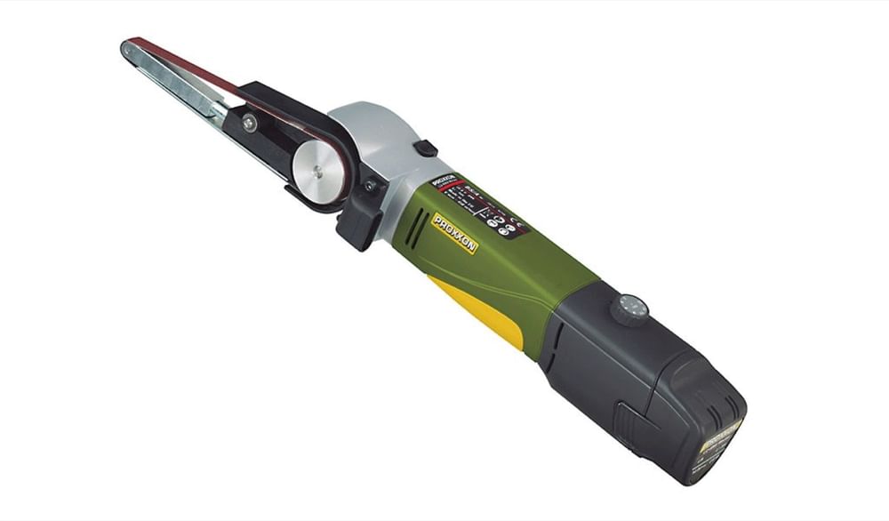 Tekniske data: 10,8 V. Slibebånd 10 x 330 mm (brugbart slibeområde 10 x 110 mm). Slibehastighed 200-700 m/min. Længde 380 mm. Vægt ca. 900 g (inkl. batteri).
