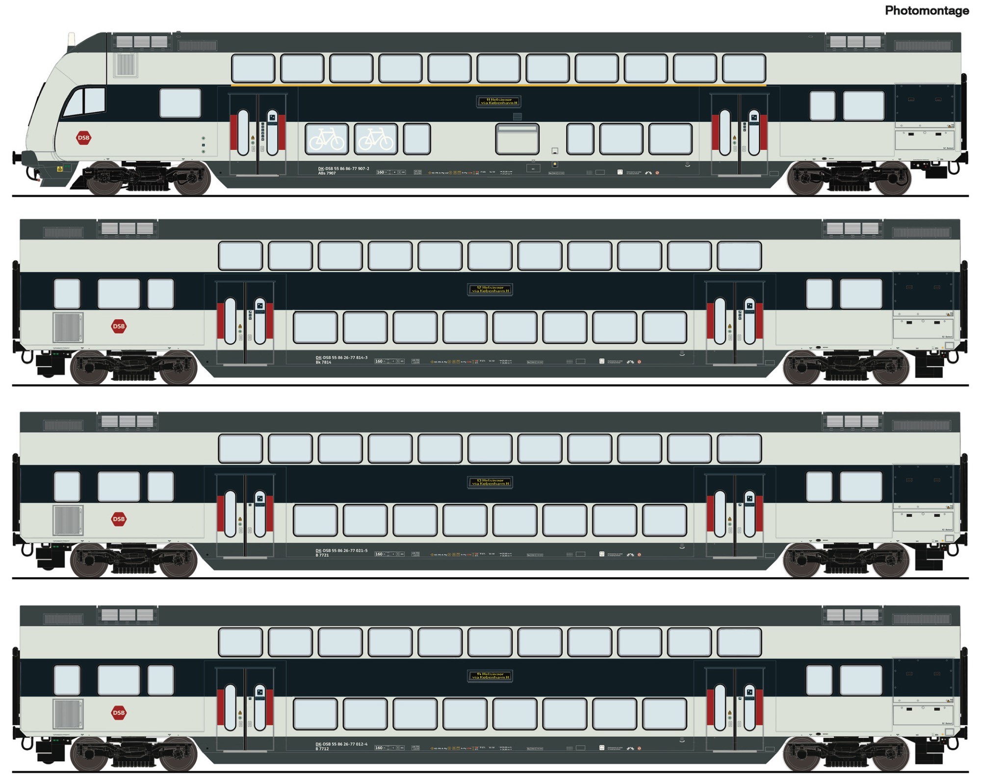 Bestehend aus zwei Doppelstockwagen 2. Klasse, Gattung B, einem Doppelstockwagen 2. Klasse, Gattung Bk und einem Doppelstock-Steuerwagen 1./2. Klasse, Gattung ABs.