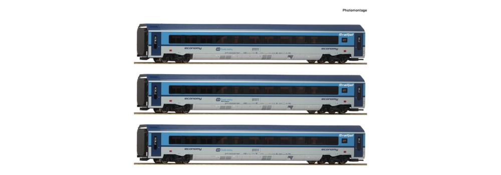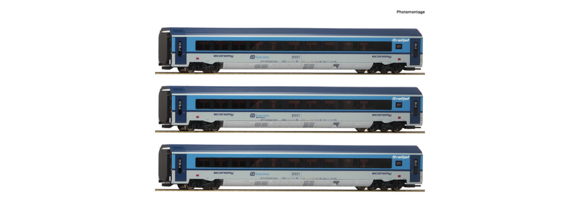 3-teiliges Wagenset "Railjet" der Tschechischen Staatsbahn. Epoche VI.