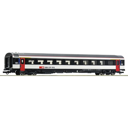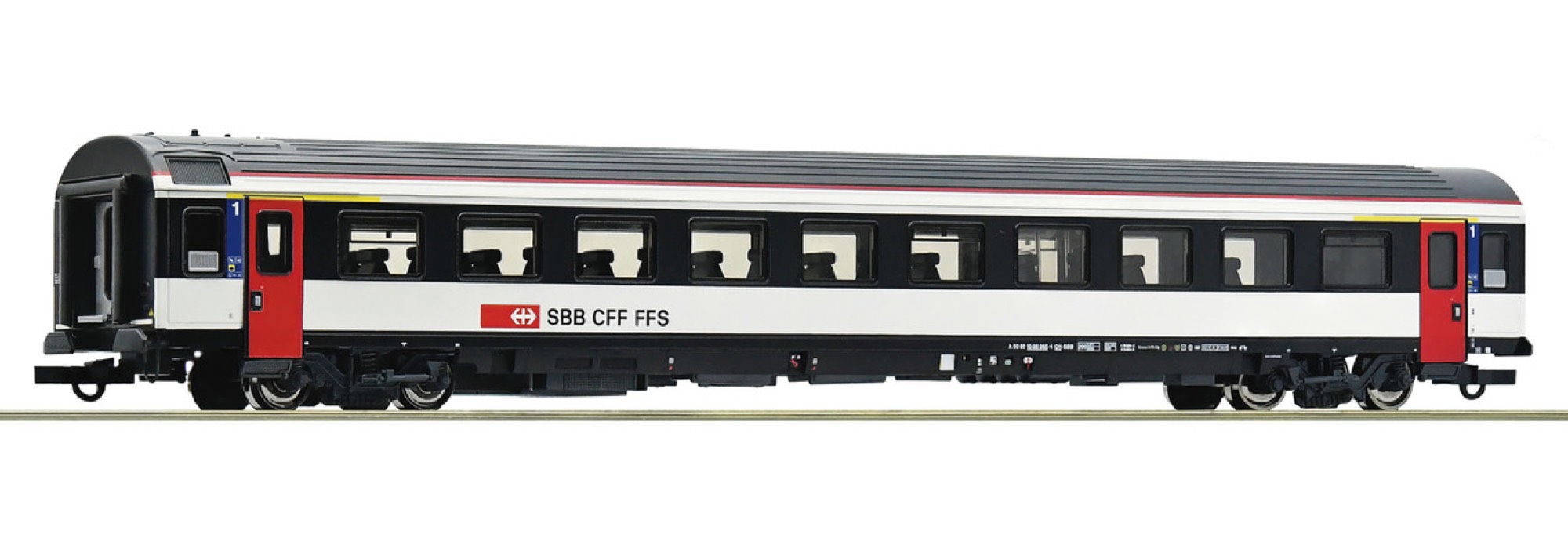 EW-IV-Reisezugwagen 1. Klasse, Gattung A, der Schweizerischen Bundesbahnen. ■ Erstmals im neuen Design mit roten Türen als Prototyp-Ausführung ■ Drehgestelle mit Schlingerdämpfer ■ Art.-Nr. 74474: Geänderte Betriebsnummer Die Einheitswagen vom Typ EW IV wurden ab 1981 an die SBB geliefert und bilden mit über 500 Stück eine der größten Schweizer Wagenflotten. Der Wagenkasten ist in geschweißter Stahl-Leichtbauweise gefertigt. Bei den Reisenden sind die Wagen wegen des großzügigen Interieurs mit Vis-à-vis-Bestuhlung und dem ruhigen Laufverhalten auch bei hohen Geschwindigkeiten sehr beliebt. Die EW-IV-Wagen sind mit diversen Modernisierungen bis heute praktisch in der gesamten Schweiz im Einsatz.