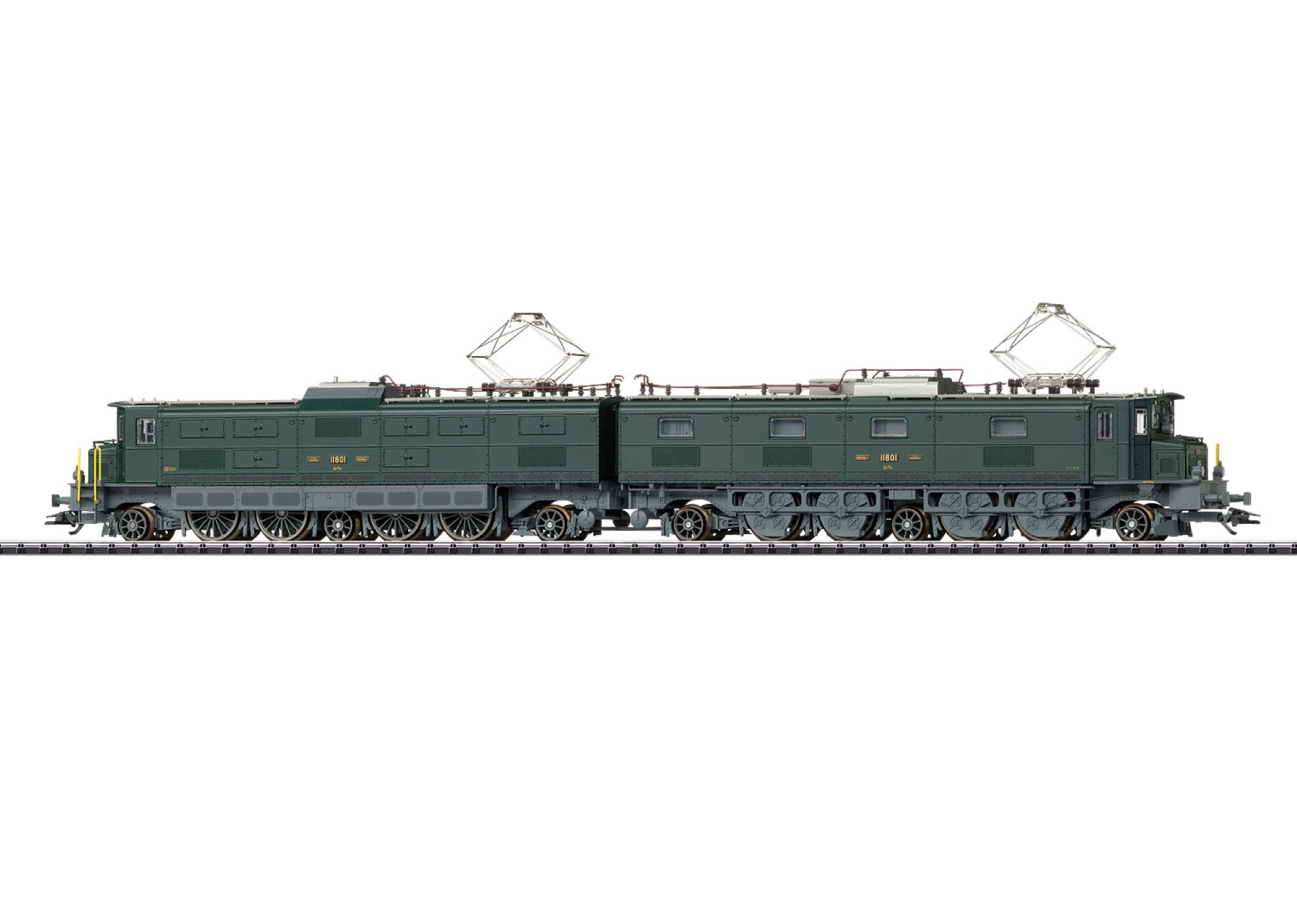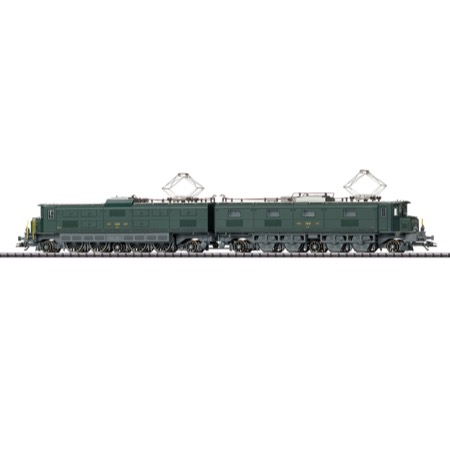 Modell: Mit Digital-Decoder und umfangreichen Licht- und Soundfunktionen. In jeder Lokhälfte ein geregelter Hochleistungsantrieb mit Schwungmasse. Jeweils 2 Achsen in jeder Lokhälfte angetrieben. Haftreifen. Fahrtrichtungsabhängig wechselndes Dreilicht-Spitzensignal und 1 weißes Schlußlicht konventionell in Betrieb, digital schaltbar. Umschaltbar auf 1 rotes Schlußlicht bei Solofahrt. Spitzensignal an Lokseite 2 und 1 jeweils digital separat abschaltbar. Doppel-A-Lichtfunktion. Je Lokhälfte Führerstandbeleuchtung separat digital schaltbar. Beleuchtung mit wartungsfreien warmweißen und roten Leuchtdioden (LED). Heb- und Senkantrieb für beide Pantographen, jeweils separat digital schaltbar. An beiden Stirnseiten vorbildgerecht aufgedrucktes Kreidefeld auf dem Rahmenstirnblech der Pufferbohle. Ein Booklet über die Geschichte der Lokomotive liegt bei. Länge über Puffer: 39,1 cm.